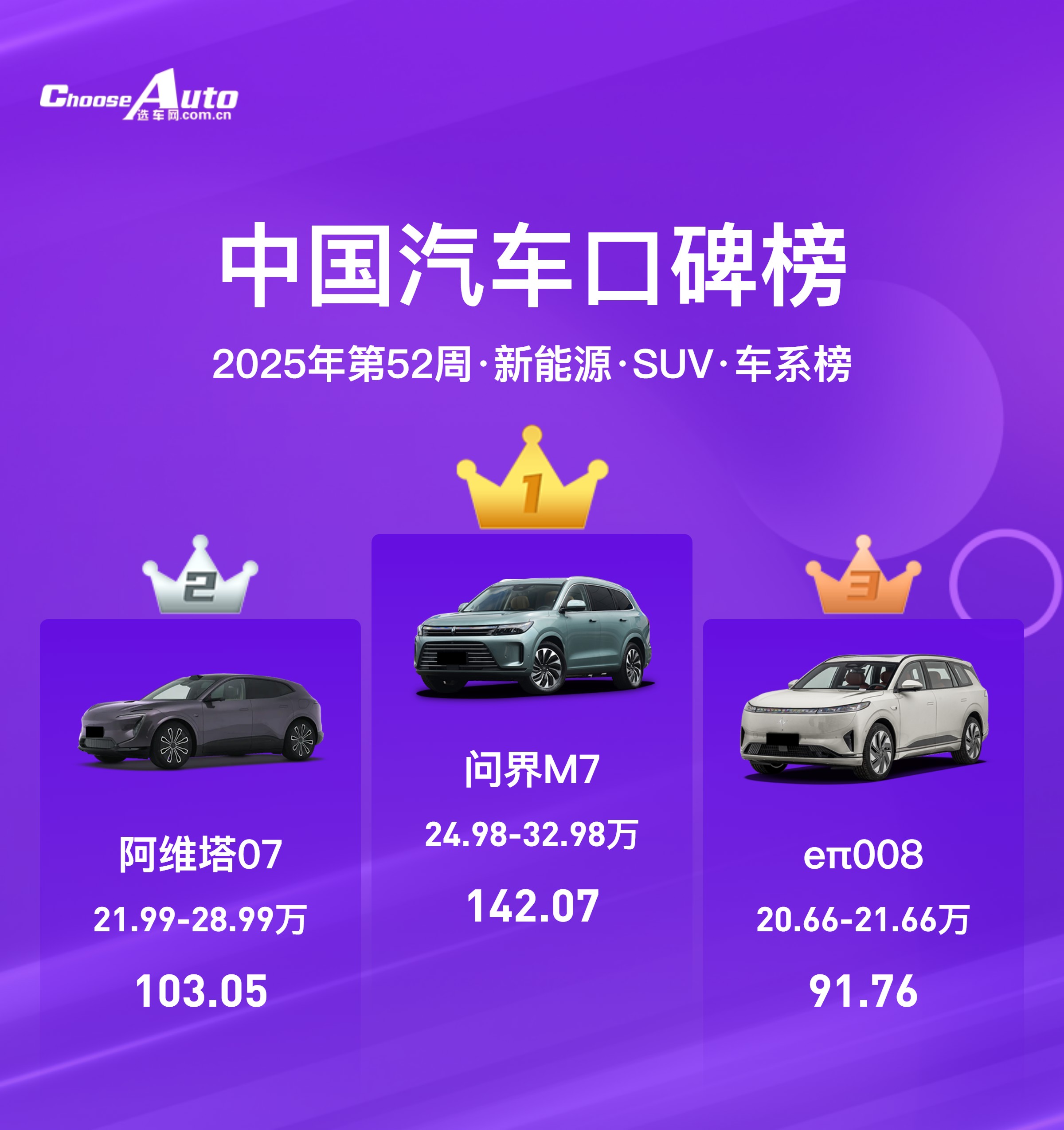 随着新能源汽车市场的不断发展,消费者对于新能源车型的关注度越来越高。近日,选车网发布了2025年第52周的中国汽车口碑榜,涵盖了新能源SUV、MPV和轿车三个细分市场。这份榜单不仅展示了当前市场上最受欢迎的车型,也反映了消费者对于新能源汽车的偏好和需求。本文将从公众的角度出发,分析这份榜单,帮助大家更好地理解新能源汽车市场的现状和趋势。