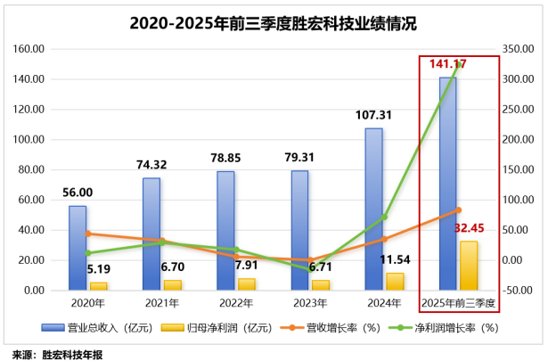 2025年前三季度,胜宏科技实现营收141.17亿元,同比大增83.39%;实现净利润32.45亿元,同比激增324.38%。无论是营收还是净利润,均已超过2024年全年水平。