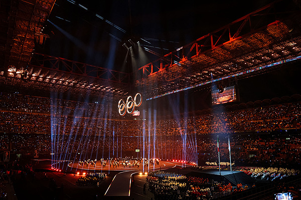 周五的开幕式开创奥运历史先河:在意大利北部多地同步上演。在圣西罗球场、科尔蒂纳丹佩佐镇中心、利维尼奥的单板滑雪和自由式滑雪赛场、佩拉扎索的跳台滑雪场馆,意大利以“和谐”为主题,用共同愿景联结地域、民众与价值理念。圣西罗球场内,一场极具电影质感的绝美艺术演出致敬东道主,最终米兰、科尔蒂纳两座主办城市的圣火台同步点燃,将盛典推向高潮。